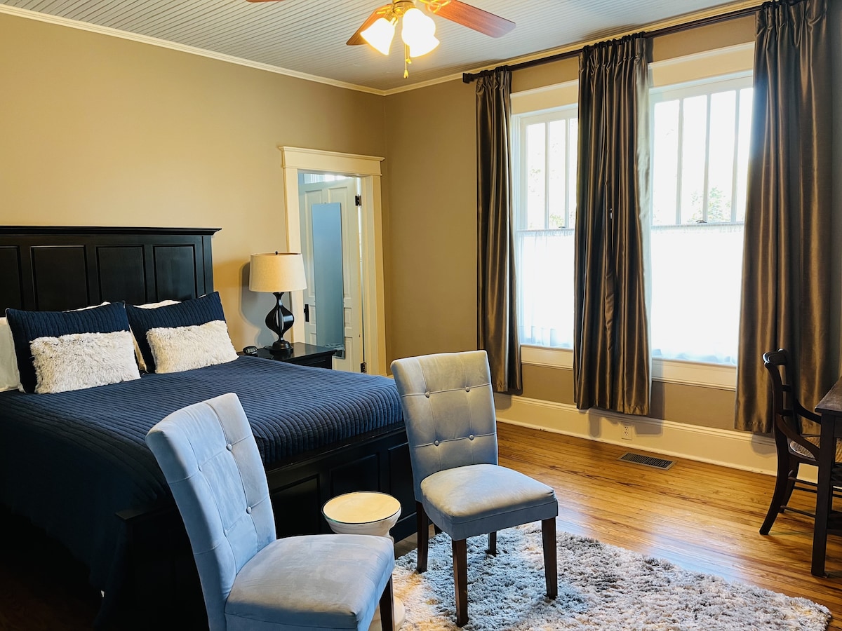 Remontez le temps dans la Retro Retreat, une élégante maison de 2 chambres alliant design vintage et confort moderne. Faites tourner des vinyles sur le Victrola, sirotez un café sur le porche ensoleillé ouvert toute l'année et cuisinez dans une cuisine au thème rétro mais moderne avec un réfrigérateur et un micro-ondes de style vintage. À quelques minutes du centre-ville, avec un lit King Size, une connexion Wi-Fi ultra rapide et une télévision connectée. À l'extérieur, détendez-vous sur les fauteuils poires géants ou près du foyer dans la cour clôturée. Il est parfait pour les couples, les petits groupes et les escapades de long week-end.