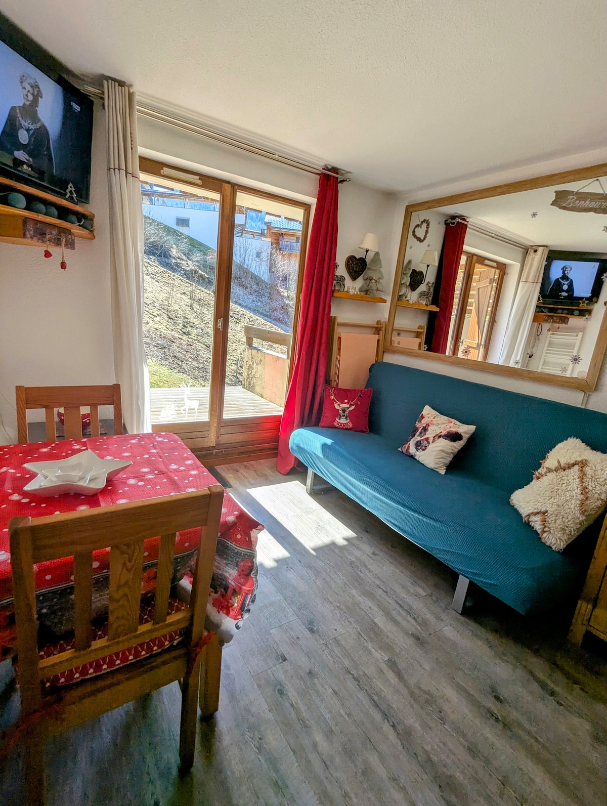 Studio équipé avec vue sur la Vallée. À 600 mètres des remontées mécaniques. Composé d'une entrée avec coin montagne, une salle de bain, un WC séparé, un séjour avec canapé convertible et une cuisine. Le studio est situé au 1er étage d'une résidence calme. Arrêt de bus devant la résidence. Le centre du village et ses commodités se trouve à 10 minutes à pied. Animaux non admis. Le linge de maison n'est pas fourni (draps, serviettes..) Le ménage doit être effectué par vos soins avant votre départ.