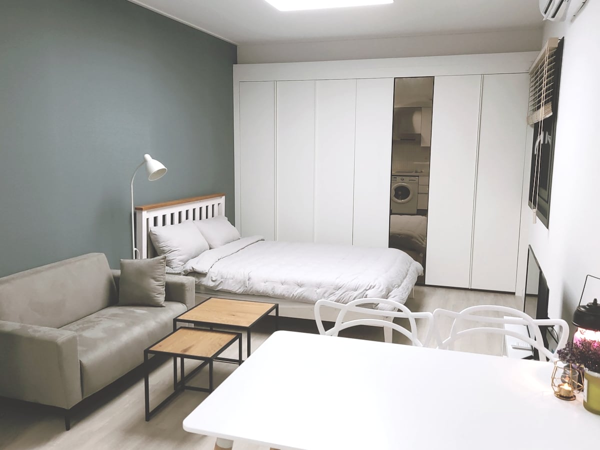 Open in 2023 This is a full-option residence - Non-Contact check-in [Bedroom] - a queen-size bed [Kitchen] - a variety of easy-to-cook cooking utensils - refrigerator, microwave, electric kettle - Washing machine, laundry detergent *we don't provide any condiments. [Bathroom] - Shampoo, hair conditioner, body wash - Hair dryer, towel - It's a bidet in the room *We do not provide disposable bathroom products (toothbrushes, toothpaste, etc.) * You can park in the building for a fee.