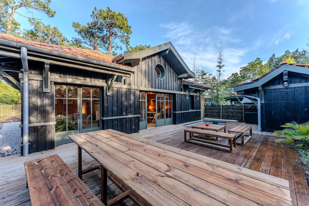 Beach House est une dépendance d'une maison d'architecte avec garage en bois brulé qui vous propose un environnement de choix avec une discrétion assurée et une convivialité promise. Vous serez indépendants avec une terrasse privée et un confort cosy. Nous serions ravis de vous recevoir dans cette petite maison du bonheur pleine de charme aux portes de l'océan. à 4 kms de l'océan et à 3 kms du bassin d'Arcachon. Le Cap Ferret est à 13 kms traversant les pittoresques villages ostréicoles