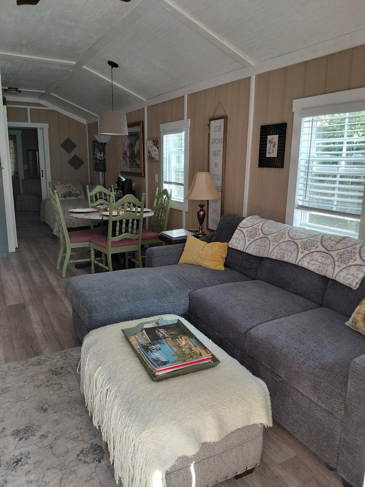 Parfait pour une escapade romantique ou en solo, un voyage touristique ou simplement de passage ! Cette micro-maison de 360 pieds carrés est spacieuse et pratique avec son plan de plain-pied, ses hauts plafonds, sa lumière naturelle et ses équipements de base pour votre séjour. Il n'y a PAS de télévision, mais il y a une connexion Wi-Fi haut débit à utiliser sur votre propre appareil ! À seulement quelques minutes en voiture de Tryon et Landrum pour dîner/faire du shopping, et beaucoup à faire dans la région ou tout simplement vous détendre et profiter de la belle ferme !