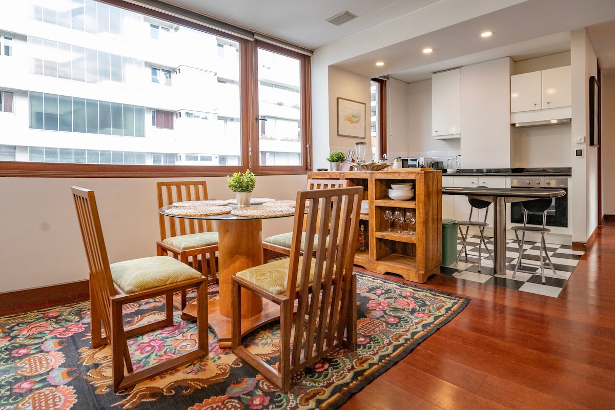 Enjoy a great experience in this save location in Barrio El Golf. Modern and cozy apartment with a privileged location, in the heart of gourmet cuisine and luxury shops of Santiago de Chile "Barrio El Golf". The neighborhood is characterized by its great architectural value and its attractive and varied cultural, gastronomic, and recreational offer. (restaurants, cafes, bars, theaters, museums, design galleries, etc). A few meters away is the metro station ¨Escuela Militar¨ and Plaza Peru.