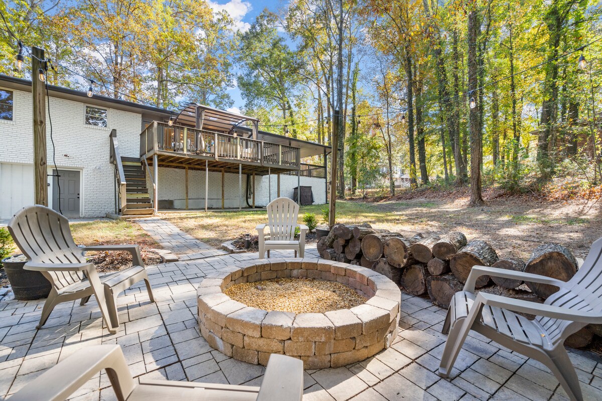 Red Door Retreat + bar extérieur, foyer, près d'ATL !