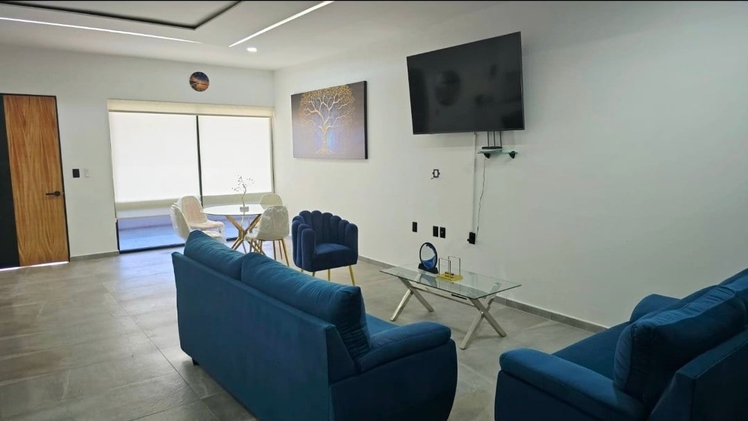 Appartement privé idéal pour se reposer, les voyages de tourisme et de travail. Il dispose de jardins extérieurs. Il a un excellent emplacement à un demi-pâté de maisons se trouve un parc, des restaurants et une épicerie à quelques minutes à pied ; à 5 minutes en voiture de l'Université de Colima, unité sportive, places commerciales, hôpitaux et complexe administratif. Service Disney+ et Star+.