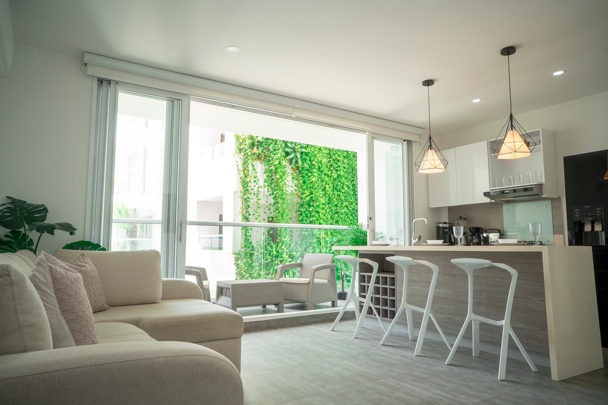 Superbe appartement au Beach Radisson Resort Residences, vue extraordinaire sur le Cienaga, la plage et la ville ; accès direct de l'hôtel à la plage aux plus belles plages de Carthagène. À 5 minutes de l'aéroport et à 10 minutes de la vieille ville (Wall City) en voiture. Les voyageurs ont accès à tous les équipements du complexe hôtelier, tels que la salle de sport, les piscines multiples, les bars, les restaurants, le spa, les jacuzzis, le Wi-Fi, la climatisation, les espaces barbecue, la réception ouverte 24h/24 et 7j/7, la sécurité, le service de bagagiste, le service de chambre, etc. Seuls les voyageurs enregistrés sont autorisés dans l'appartement.