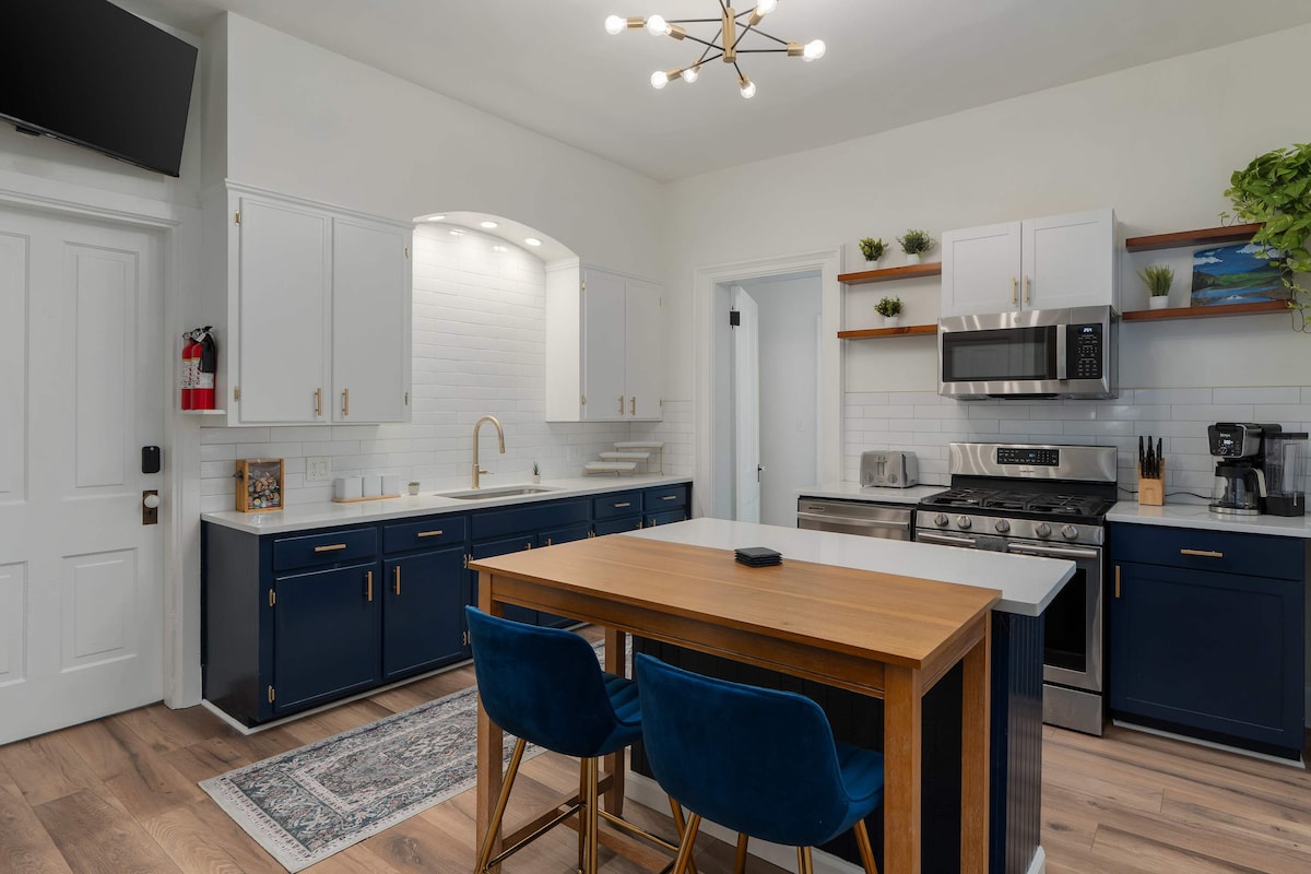 Bienvenue à The Century House, où l'histoire rencontre la modernité. Cette charmante retraite de 5 chambres bénéficie d'un design ludique mais sophistiqué avec des couleurs vives et des accents uniques. Profitez d'une cuisine entièrement équipée et d'une fresque murale à couper le souffle dans cette maison centenaire méticuleusement rénovée. Parfaitement située dans le quartier animé de Short North, avec des boutiques, des restaurants, des lieux de vie nocturne et l'OSU à quelques pas. Réservez votre séjour maintenant et découvrez le mélange parfait entre charme du vieux monde et commodités modernes.