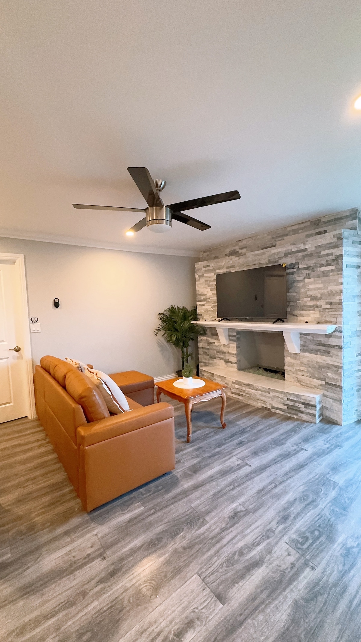 Retraite élégante et privée d'une chambre et d'une salle de bain avec un lit King Size, un décor moderne et un accès privé au patio. Caractéristiques : - Cuisine entièrement équipée avec appareils en acier inoxydable ; - Salle de bains de type spa avec douche à l'italienne - Espace de travail dédié - Entrée privée. Equipements : - Wi-Fi haut débit - Climatisation - Lave-linge/sèche-linge dans le logement. Situé dans un quartier animé à proximité de restaurants, de magasins et d'attractions, cet espace serein est idéal pour les affaires, les loisirs ou les séjours longue durée.