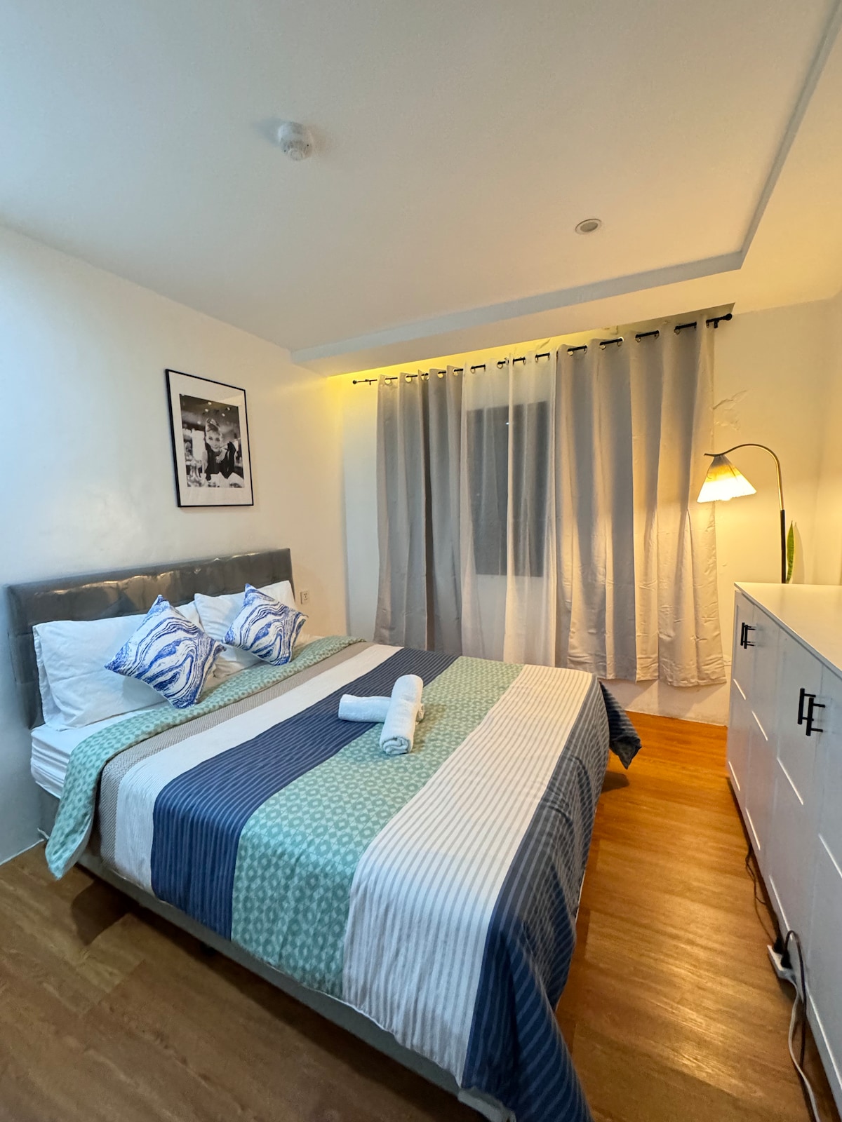 1. Mise à niveau/rénovation le 10 novembre 2024. Un nouveau climatiseur split a également été installé. Idéalement situé au cœur de la ville, à quelques mètres de Session Road, Burnham, Night Market, de la cathédrale, du marché public, de SM, du terminal de bus, etc. 2. Avec WIFI et télévision connectée Samsung de 42 pouces. 3. Supermarché Savemore au sous-sol. 4. Centre commercial, resto, Watsons, etc. dans le bâtiment. 5. Réfrigérateur, micro-ondes, chauffe-eau, ventilateur électrique, ustensiles de cuisine et de repas. 6. Les draps, les serviettes et les articles de toilette sont fournis.