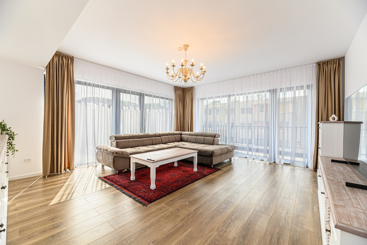 Spacious 2-Bedroom Apartment with Panoramic Views in center of Brașov: This apartment is situated on the 8th floor of a classic building and boasts an amazing panoramic view of Brașov's old town, and 2 steps to AFI mall. The space includes: - Two bedrooms; - Two modern bathrooms; - A large, fully equipped kitchen ideal with living space; - A large kitchen with living area. Big windows with amazing city views. Perfect for short or long stays, with everything you need for a comfortable visit!