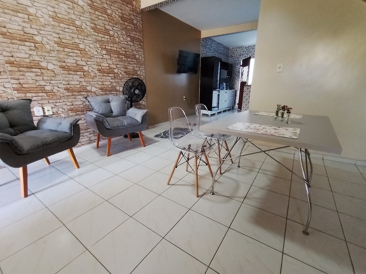 Maison confortable et confortable, avec : LE salon, Cuisine aménagée Suite et deux chambres, toutes avec climatisation, Salle de bain sociale, Cour arrière et garage pour une voiture. Excellent emplacement, endroit sûr et calme, venez séjourner et vivre une excellente expérience pendant votre séjour ! Situé dans le quartier de Frei Damião.