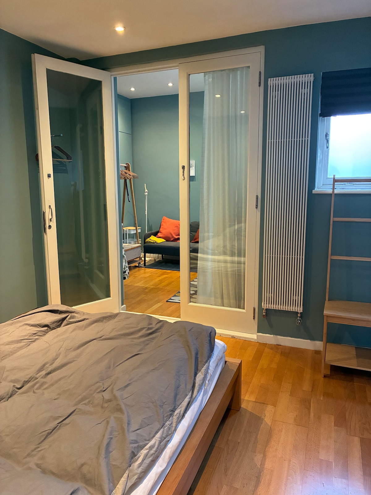 Notre appartement est grand et dispose de beaucoup de lumière naturelle, grâce aux fenêtres du sol au plafond qui bordent le séjour. Le balcon donne sur un parc et est un endroit idéal pour un café du matin. Nous fournissons toutes les commodités nécessaires pour un séjour de courte ou longue durée. Vous disposerez d'une chambre et d'une salle de bains, d'une cuisine, d'un salon et d'un balcon. Notre maison se trouve en bordure d'un joli petit parc. Elle se trouve à quelques pas de Golders Green. Nous sommes près de Hampstead Heath, une belle étendue de prairies et de bois.