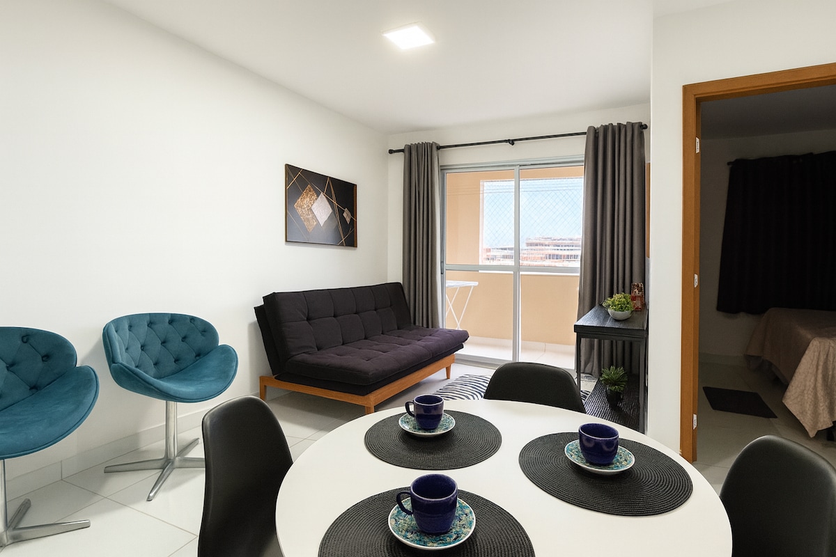 Espace confortable, dans un emplacement idéal. Votre appartement il y a 3 À quelques minutes de Shoping Pantanal et également à proximité du centre politique et administratif. internet tv ar cond enfin ce dont vous avez besoin pour un bref hébergement