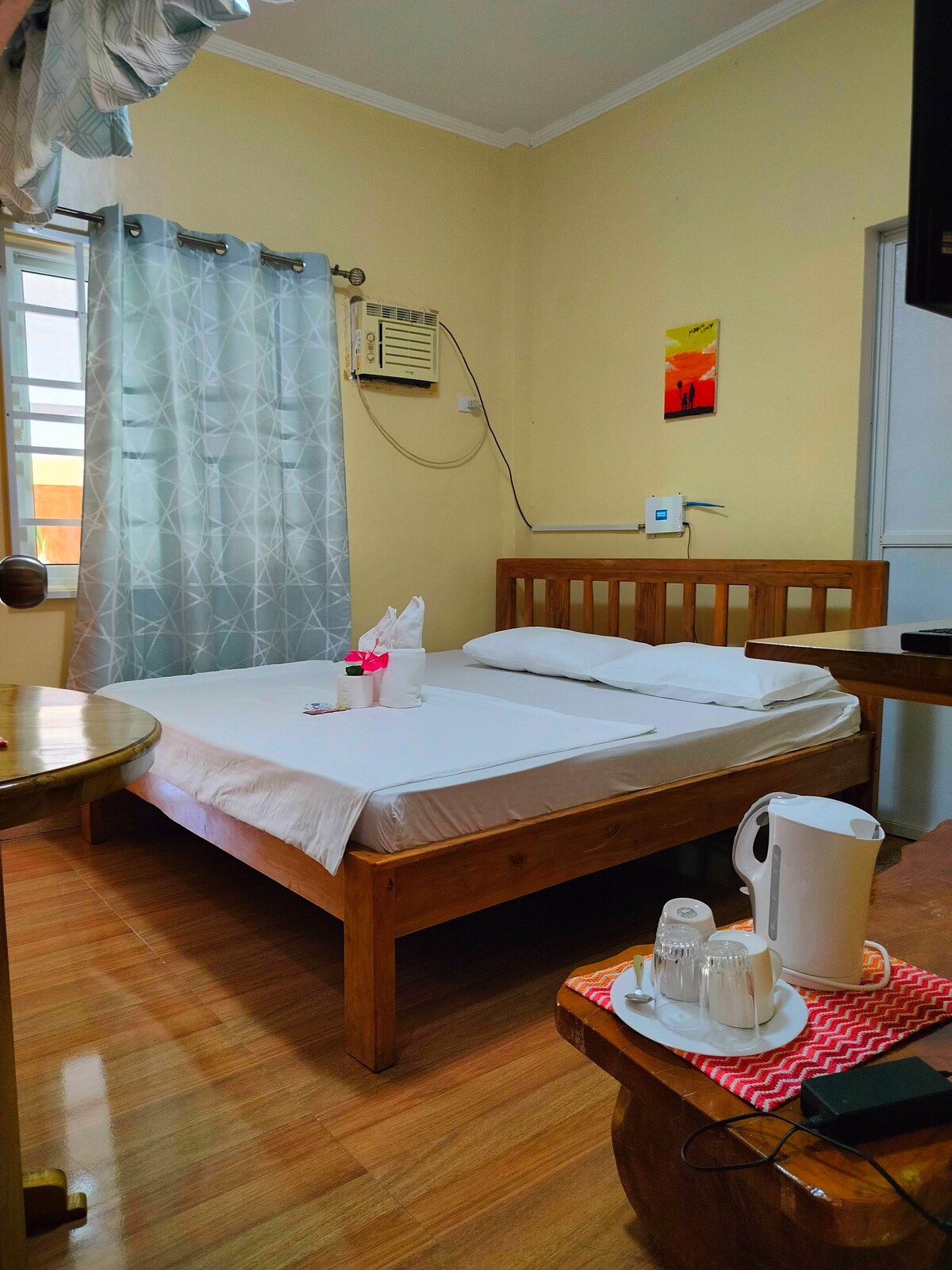 Découvrez les 1ères et uniques villas en A de Malapascua (A2) 2e de 2 petites maisons. À moins de 5 minutes à pied du port, de Logon Beach, des magasins de plongée, du marché central, des restaurants et à proximité de Bounty Beach. Eau potable chaude et froide Emplacement fermé, propre et sécurisé avec caméras de vidéosurveillance près des patios. Équipé d'un générateur d'énergie 24h/24 et 7j/7 avec ATS en cas de panne de courant, ce qui est une préoccupation sur l'île. Climatisation dans toutes les chambres avec ventilateurs muraux solaires Douche chauffée, WiFi et petit déjeuner inclus 😎 Coffres-forts dans chaque chambre.