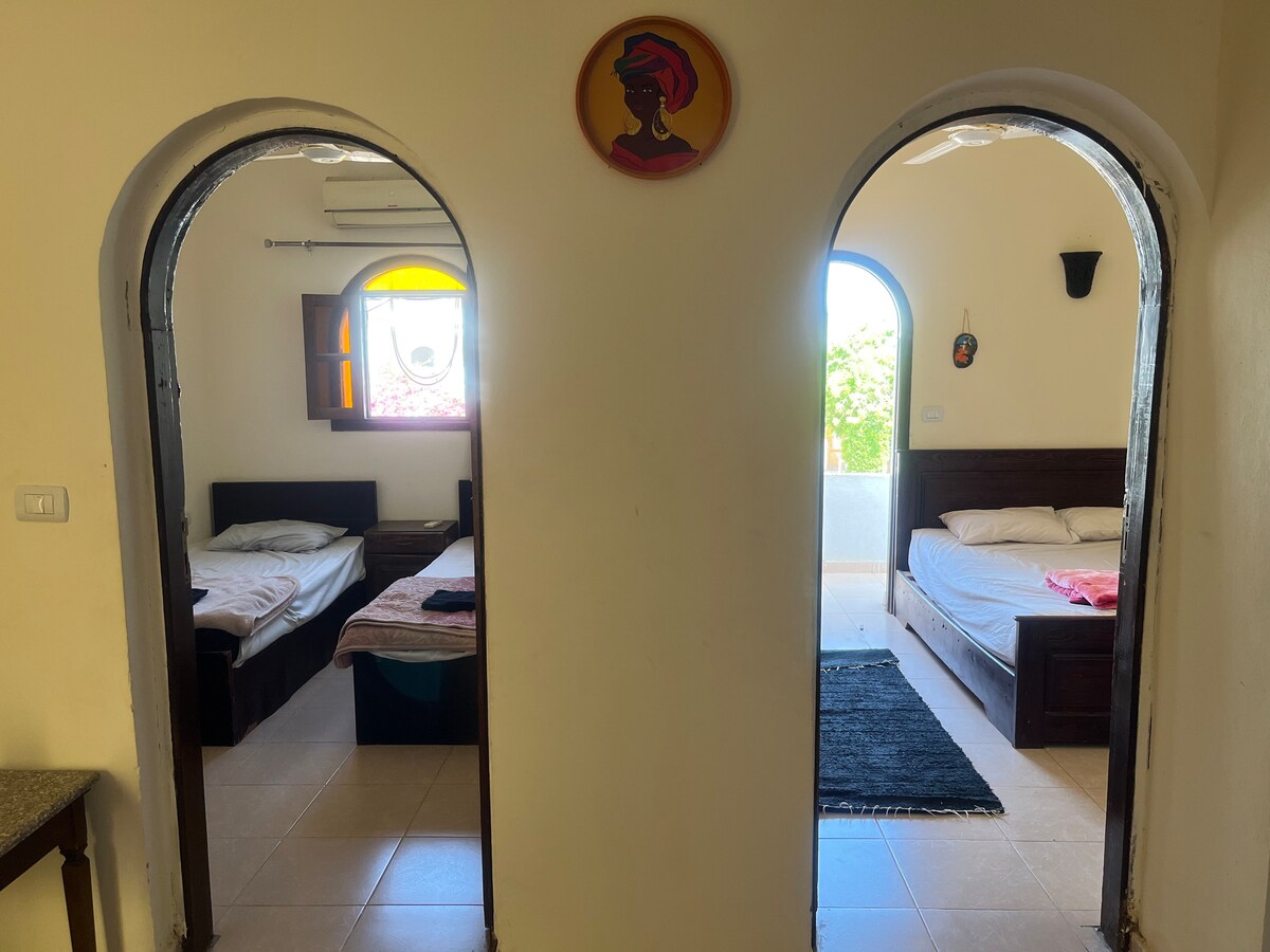 « Il s'agit d'un bel appartement de 3 chambres, tous avec vue sur la mer Rouge. Situé juste à côté de la plage, (et à proximité des restaurants et commerces) vous vous endormirez au bruit des vagues. Sortez et allez directement à la mer. Cet appartement réalisera tous vos rêves de vacances. » Les groupes mixtes non mariés ne sont pas autorisés