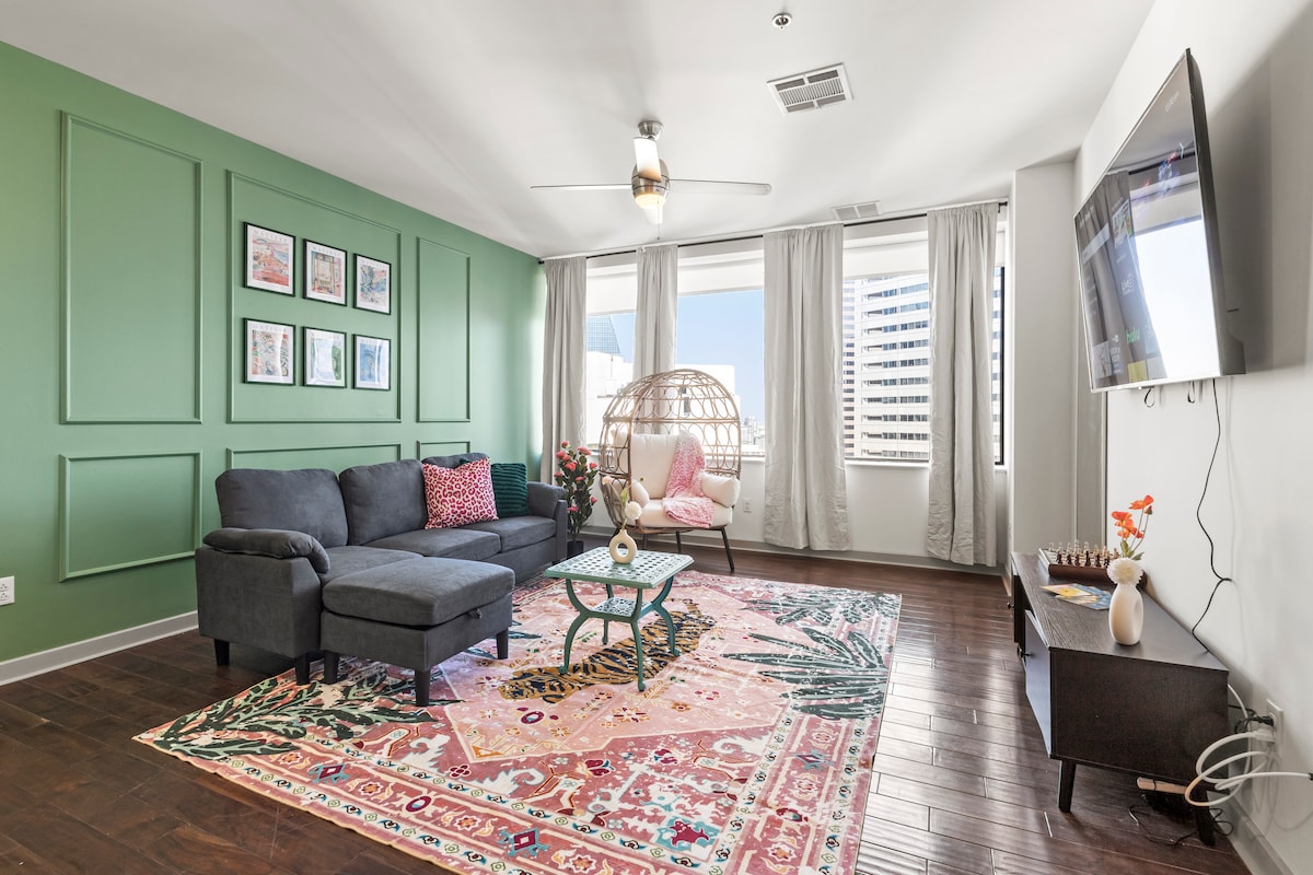 À moins de trois kilomètres du centre-ville de Dallas, le quartier de Victory Park se trouve entre le Design District et Uptown. Notre appartement est conçu pour vous aider à réfléchir au mieux. Avec des espaces spacieux et lumineux et une connexion Wi-Fi gratuite, vous aurez tout ce dont vous avez besoin pour être le plus productif possible. Détendez-vous et ressourcez-vous. Lorsque votre journée est terminée, dans un espace créé pour se détendre de toutes les manières. Assistance 24h/24 et 7j/7 pour la suite si vous avez la moindre question tout au long de votre séjour.