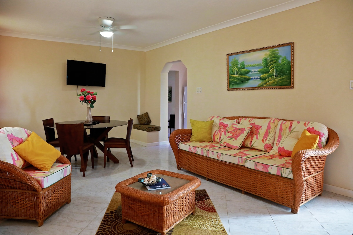 Cet appartement spacieux à l'étage est entièrement climatisé. Les voyageurs ont la possibilité d'ouvrir 8 fenêtres et des portes-fenêtres françaises qui permettent à la brise agréable des Caraïbes de circuler. Il dispose d'un coin chambre spacieux, d'un coin repas et d'une cuisine ainsi que d'un grand patio à l'étage supérieur. Situé sur la luxueuse côte ouest de la Barbade, à seulement 2 minutes à pied de la belle plage de Cobblers Cove. Les commerces, musées et restaurants sont à seulement 5 minutes.