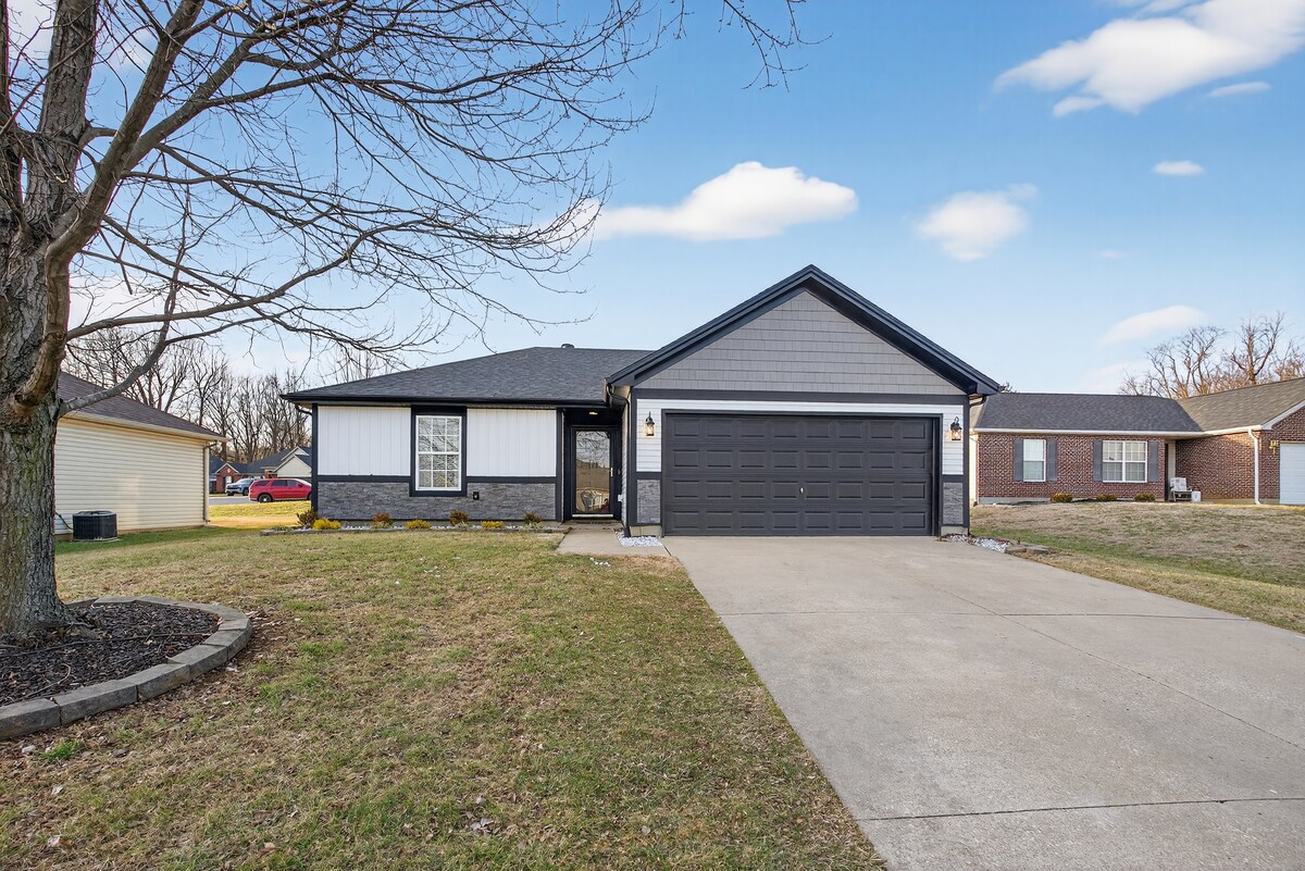 Vous serez proche de tout lorsque vous séjournerez dans cette maison de trois chambres et deux salles de bain située au centre, juste à côté de la rocade, à quelques minutes en voiture de n'importe où à Owensboro, KY, pour tous les voyageurs d'affaires. Il s'agit d'une toute nouvelle maison de construction dans le quartier de Bluegrass Commons ! Nouveau mobilier et la maison peut accueillir confortablement 6 personnes. Chambre séparée avec un concept ouvert parfait pour les familles. Cuisine entièrement équipée avec une station de café Keurig. Grande cour arrière parfaite pour les divertissements ou simplement pour faire des grillades.