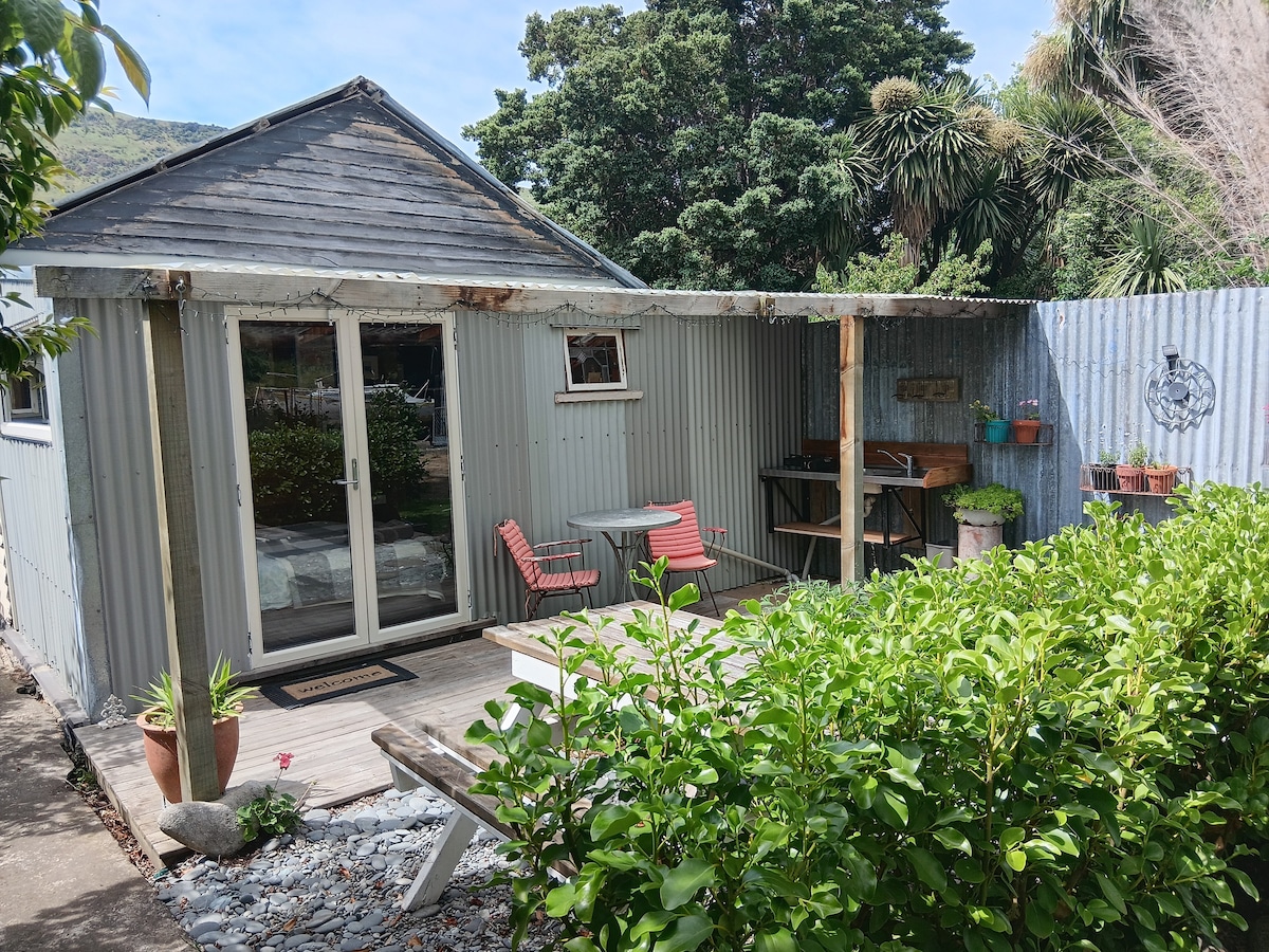 Magnifique chalet de charme avec une vue fantastique. Le chalet dispose d'un lit queen size, d'un salon, d'une douche, d'une baignoire et de toilettes avec terrasse privée. Pas autonome mais dispose d'une cuisinière à gaz, d'un ensemble de barbecue, d'un four à micro-ondes, d'un mini-réfrigérateur, d'une bouilloire et d'un grille-pain. Thé/café à piston fournis. Il y a une piste de randonnée en dessous du chalet et aussi plus de promenades dans les environs. Nous sommes situés à Diamond Harbour, à 20 minutes à pied de la jetée où vous pouvez prendre un ferry pour Lyttelton, à seulement 10 minutes de route, un beau voyage.