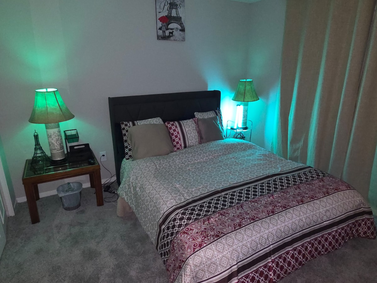Il s'agit d'un appartement privé au sous-sol avec sa propre entrée, séparé de la maison principale, qui accueille d'autres voyageurs. Cet appartement privé est équipé d'un ensemble de lit King Size, d'un fauteuil confortable, d'un canapé-lit pliant, de 2 téléviseurs intelligents pour afficher vos applications préférées, d'une salle de bain complète, d'un coin repas dans la cuisine dans un quartier calme. Accès facile aux entreprises de la région, aux principales autoroutes, aux lieux de divertissement, à MARTA et au charmant centre-ville de Norcross. Il y a un accès à la terrasse avec barbecue, table de patio et lave-linge/sèche-linge partagés par les autres voyageurs de la maison.