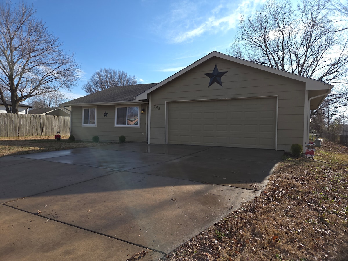 Moderne minimaliste de style 3 chambres avec beaucoup d'espace. La maison est située juste à la frontière Wichita-Derby et se trouve à proximité de toutes les principales autoroutes. Derby a beaucoup d'options de nourriture, de shopping et de divertissement familial (parc aquatique, parc d'aventure de dinosaures, etc.). À 3 km de Spirit Aerosystems. 8 miles à la base aérienne de McConnell. 15 minutes en voiture du centre-ville de Wichita. Mon objectif ultime est de vous fournir un espace absolument génial à un prix abordable. Autorisation : 1001205