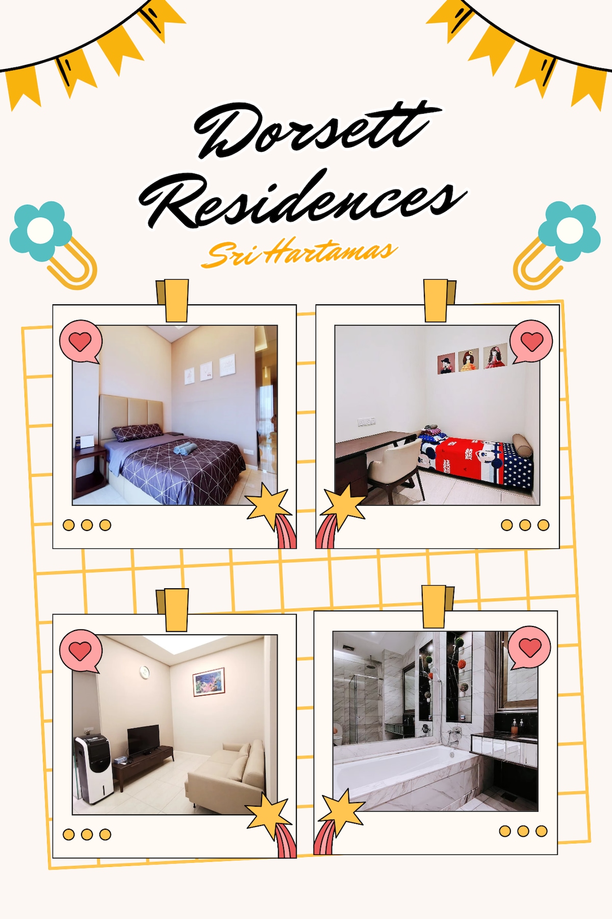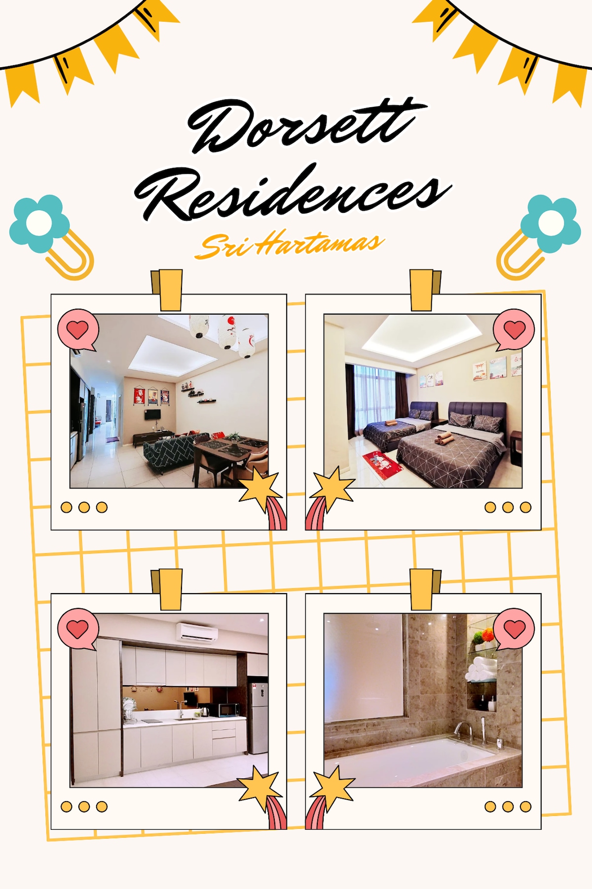 Dorsett Hartamas by Cj : un appartement haut de gamme très confortable situé au cœur des quartiers de Sri Hartamas avec Bangsar, Dutamas, Mont Kiara, Damansara et Kuala Lumpur City. Cet appartement avec services haut de gamme est NEUF et dispose d'équipements 5 étoiles et d'une grande accessibilité, ce qui en fait l'hébergement idéal pour vivre, travailler et se détendre. Cet appartement est noté pour le meilleur rapport qualité-prix à Kuala Lumpur !