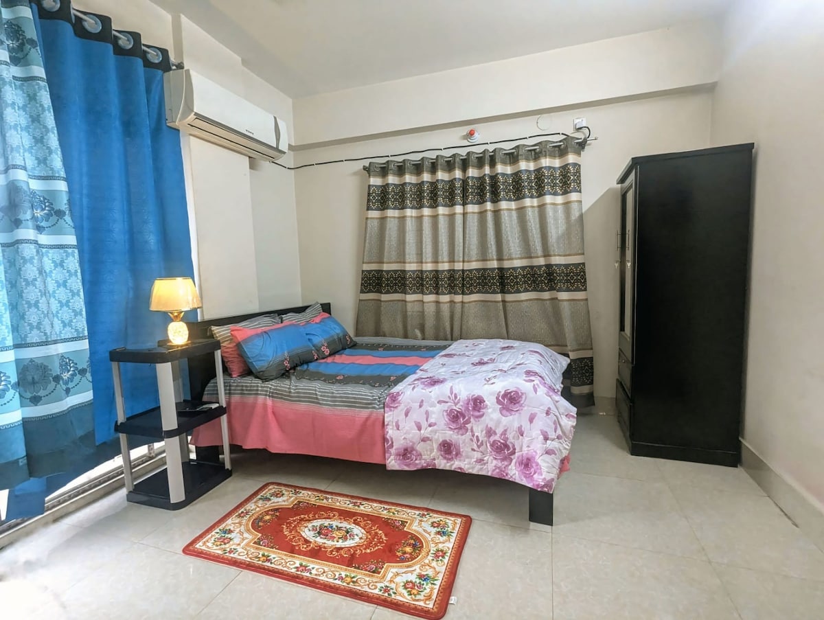 Résidence de tourisme moderne 3 chambres à Uttara, à seulement quelques pas du métro ! Profitez de 2 chambres climatisées, d'une cuisine entièrement équipée, d'une connexion Wi-Fi rapide et d'un confort élégant. Parfait pour les familles, les voyageurs en solo, les étrangers ou les voyageurs d'affaires. Marchez jusqu'au shopping, aux restaurants et aux principales attractions. Une retraite paisible et confortable au cœur de Dhaka, votre maison loin de chez vous !