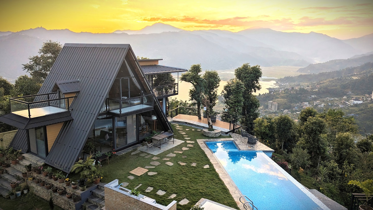 The Pipal Tree Pokhara, villa de montagne avec piscine Notre cabane en A vous invite à ralentir, faire une pause et renouer avec vous-même au milieu de la montagne tranquille. 💥 Pas de conférenciers ni de fêtes ⚡✮ ✮ ✮✮ ✮ sur Airbnb ▪️Derrière l'immeuble résidentiel de l'hôte ▪️Emplacement au sommet d'une colline, vue sur l'Himalaya et le lac ▪️La route est pittoresque, venteuse et un peu de terre, à 3 km de la ville ▪️3 lits, 2 salles de bain, salon, salle à manger Magasins ▪️d'angle à 10 minutes, Gorcery stores en ville Voiture ▪️touristique disponible ▪️Piscine ️⃣ @thepipaltree.pokharavilla