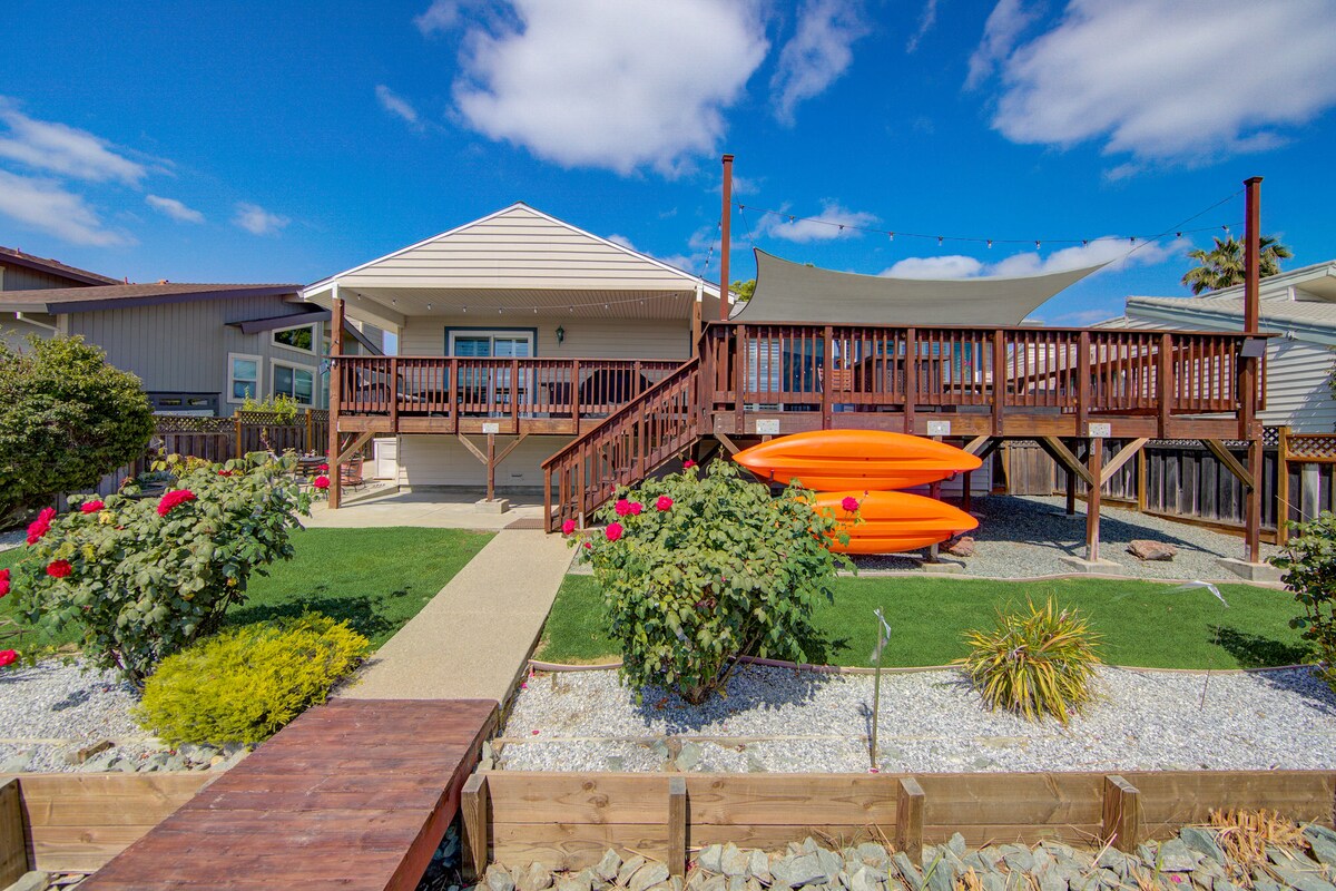 Bienvenue au Lake House at Discovery Bay : votre retraite sereine nichée dans la région pittoresque du delta de la Californie. Ce havre de paix au bord du lac dispose de 4 chambres et de 2 salles de bain, pouvant accueillir 10 adultes ou 12 personnes avec enfants. Pagayez sur le lac dans l'un de nos kayaks, canoë ou pédalo à votre disposition pour votre usage exclusif. Profitez de la terrasse extérieure, équipée de meubles et de salles à manger confortables, d'un foyer, parfait pour les barbecues sur le barbecue à gaz. La Lake House vous attend, prête à devenir votre maison loin de chez vous.