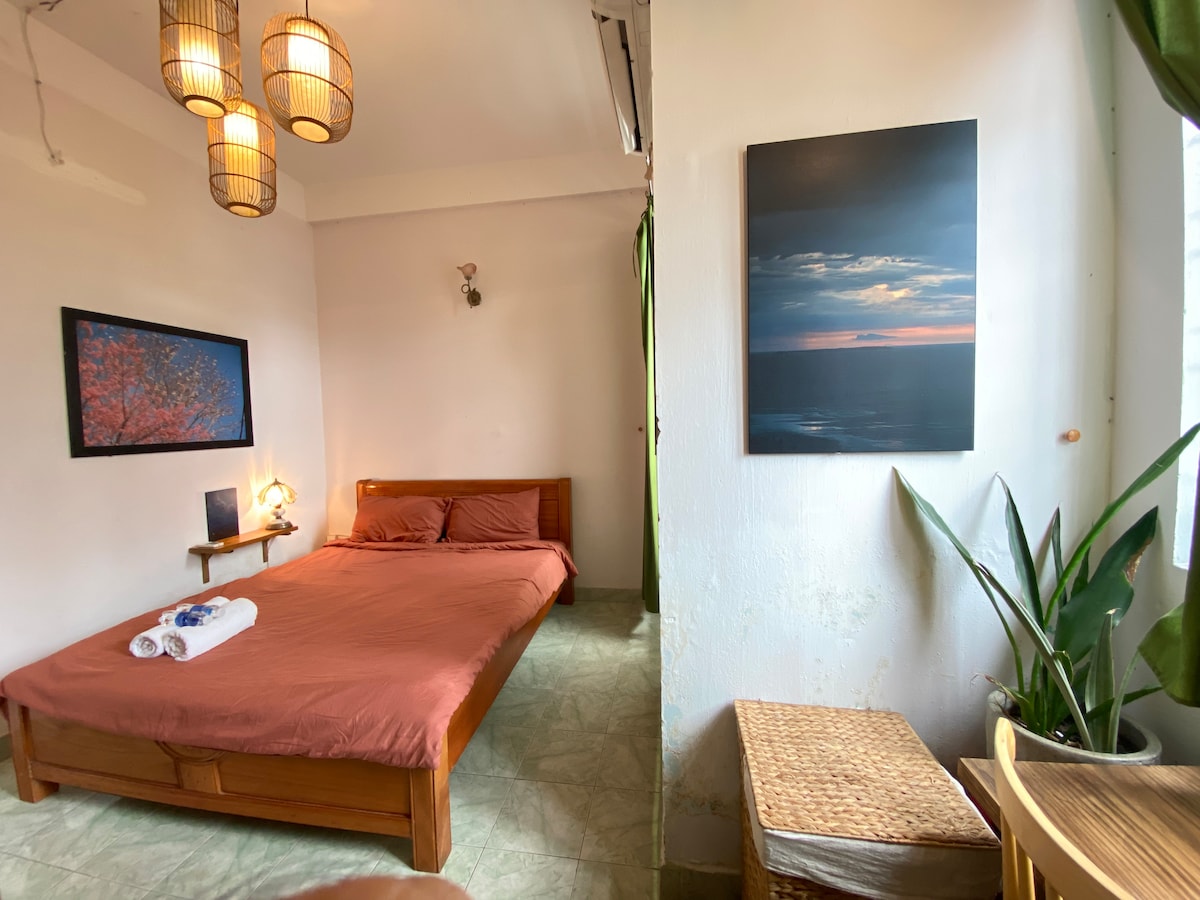 Bienvenue dans notre tout nouveau studio alliant confort et style bohème. Votre famille sera proche de tout lorsque vous séjournerez dans ce logement central - Situé au cœur de Ho Chi Minh, il est calme jour et nuit car il est au 4e étage - Posséder une vue imprenable depuis la grande fenêtre côté rue. Ressemblait aux photos, plein d'équipements nécessaires, exceptionnel par projecteur Full HD - Pas de couvre-feu - Accessibilité 24h/24 et 7j/7 avec des instructions claires - Wifi haut débit et privé, entièrement climatisé