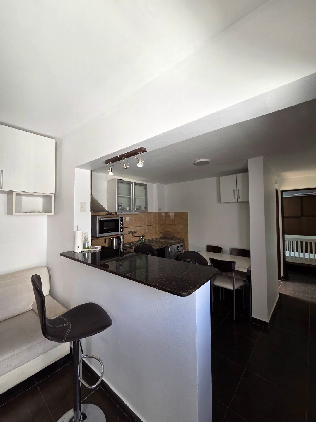 Departamento en planta alta mediante escaleras totalmente equipado para que en tu viaje vacacional o laboral no tengas que preocuparte por nada. Súper cómodo y luminoso. Ideal para cuatro personas, cama doble y dos camas simples. Se encuentro en pleno centro, a metros del Bar Antares.