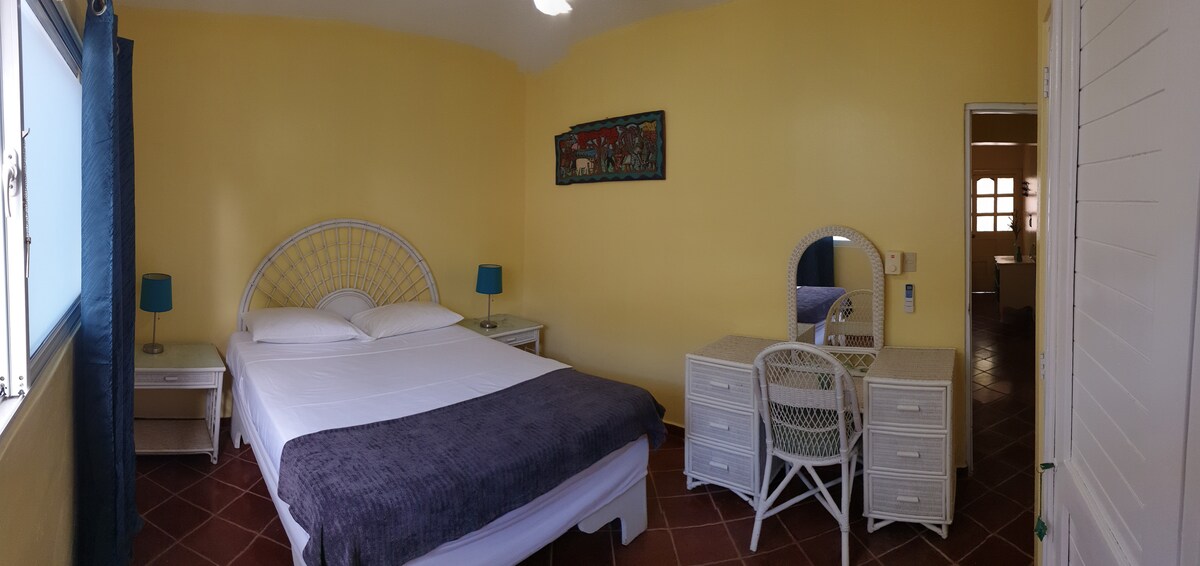 3 minutes walk to the private Beach. Escape to the Tropical Paradise, with a Blue Flag category Beach, Relax, lying under palm trees , walking in the white sand beach, swimming in crystal clear turquoise water and enjoy the most spectacular landscape in Bayahibe, Dominican Republic. Beautiful and cozy, full equipment apartment next to the beach, with two 2 bedrooms with 2 baths, full equipment to accommodate until 6 people. You and your family will enjoy and love this place.