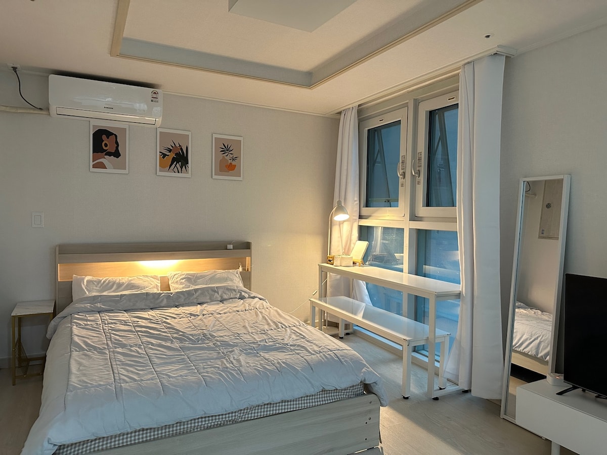 🎀Arrivée après 16 h, départ avant 12 h ✨️ Vous pouvez regarder 🥳Netflix gratuitement Parking gratuit disponible dans l'🚗immeuble (n'hésitez pas à nous contacter à l'avance si vous prévoyez d'utiliser le parking.) Parking jusqu'au 3e étage du sous-sol (s'il est complet ou non, utilisez le parking extérieur) À 3 minutes à pied du 🤠grand magasin Shinsegae/centre de transfert du complexe de la gare de Dongdaegu (centre-ville dans la région de Cho Station) Si vous faites 👿trop de bruit, des plaintes peuvent survenir. (Attention !) Dépanneur, café au premier étage du 🥤bâtiment Il y a 1 lit double dans la 🎀chambre et 1 canapé lit dans l'espace commun, il est donc adapté pour un maximum de 3 personnes. 🫧La literie est lavée/entretenue soigneusement tous les jours. (En cas de contamination de la literie (taches de sang, colorant, etc.), demande d'indemnisation 🫧25.7.01 jour le système de climatisation a été nettoyé Des 🧂ustensiles de cuisine/assaisonnements sont fournis, vous pouvez donc cuisiner des repas simples. 📍Cependant, la viande à forte odeur, le poisson grillé, etc. sont interdits.👽 🍽Les couverts sont nettoyés/désinfectés quotidiennement. 😱Interdiction de fumer 😭Les chiens ne sont pas autorisés 2 lisseurs de 💇♀️ cheveux fournis😍 Aucun changement de date après la confirmation 🥹de la réservation !