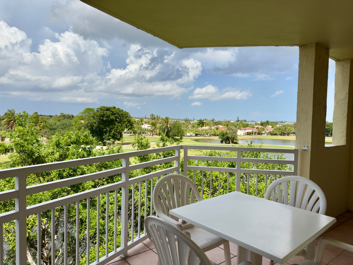 Profitez au maximum de votre séjour avec une vue rafraîchissante sur la piscine dans cette suite accueillante d'une chambre. Offrant un confort optimal, cette suite est idéale pour accueillir jusqu'à quatre personnes, avec un lit King Size et un canapé-lit Queen Size. Détendez-vous sur votre balcon ou votre patio donnant sur la piscine de style resort, ou retirez-vous à l'intérieur pour profiter de la baignoire à jets, de la double vasque et de la douche à l'italienne. Une cuisine entièrement équipée fournit tout le nécessaire pour les repas, du réfrigérateur de grande taille aux casseroles, poêles et vaisselle.