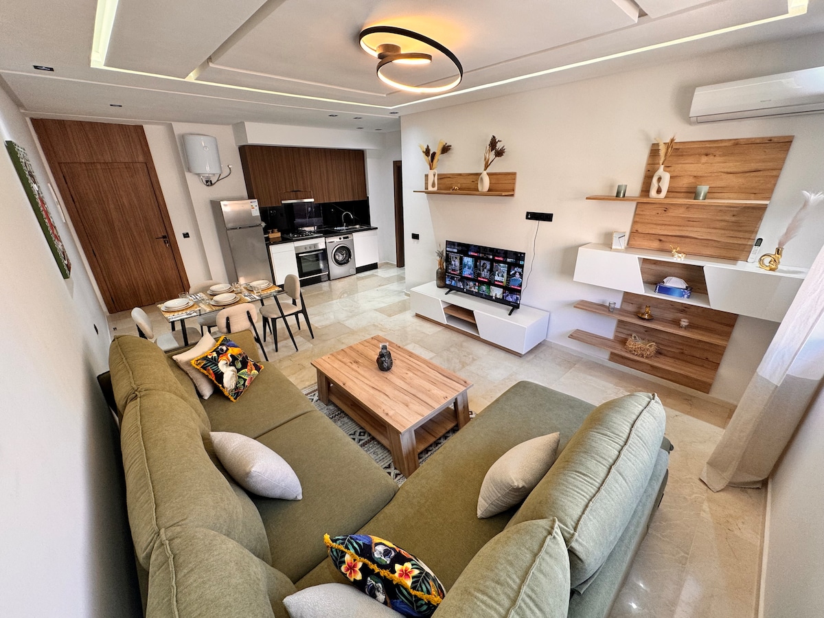 Welcome to your stylish retreat in Marrakesh. This modern, centrally located apartment combines comfort, convenience, and design flair—perfect for both short city breaks and longer stays. 🌍 Location Highlights 10 min drive from Marrakesh Menara Airport 7 min drive / 25 min walk to Gueliz (city center) 15 min drive to Jemaa el-Fna & the Medina 5 min drive / 15 min walk to the train station 4 min drive / 15 min walk to M Avenue Walking distance to a large supermarket, cafés, and local shops