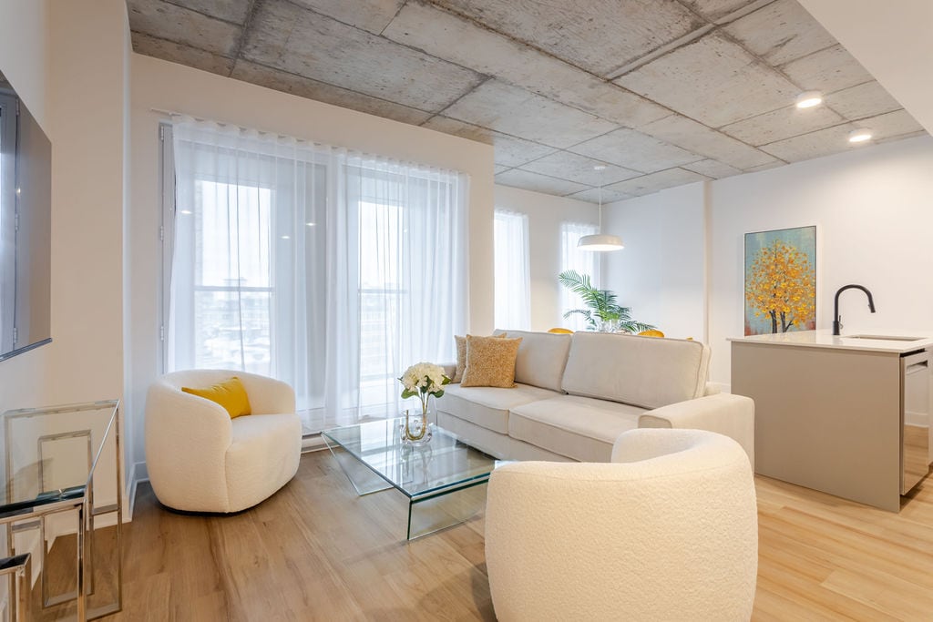 Bienvenue dans notre superbe suite moderne au cœur du centre-ville de Montréal, à quelques pas du Vieux-Port ! Cette suite élégante dispose d'un design ouvert sophistiqué, de finitions haut de gamme et d'une cuisine entièrement équipée parfaite pour les repas faits maison. Détendez-vous dans les chambres luxueuses avec une literie moelleuse et détendez-vous dans l'élégant espace de vie. Avec les meilleurs restaurants, boutiques et vie nocturne à deux pas, découvrez le mélange parfait de confort et d'excitation urbaine !