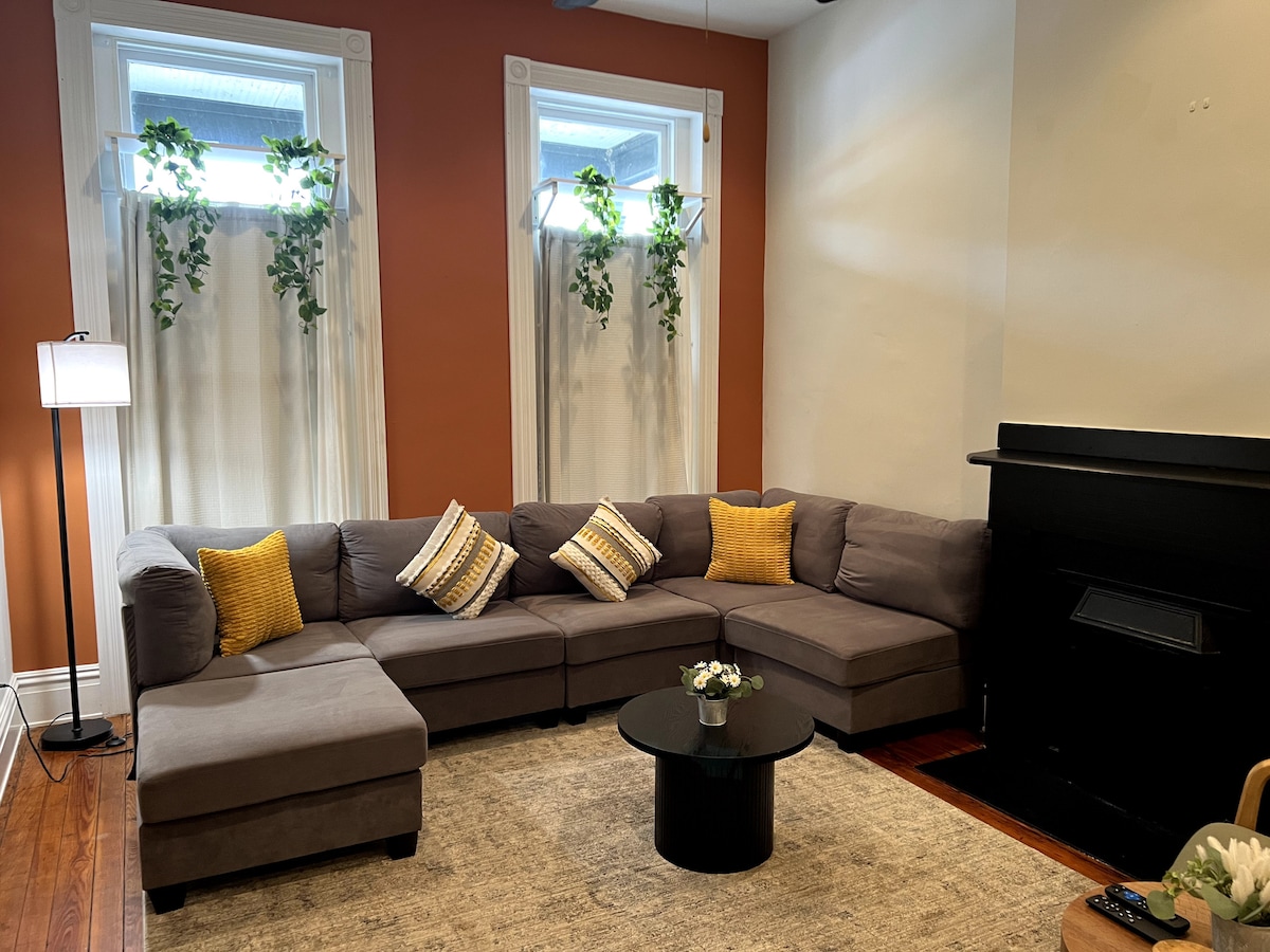Profitez de cet appartement élégant, spacieux et situé au centre de RVA ! Ce joyau d'une chambre dispose d'un lit King Size, d'un canapé-lit complet et d'un canapé-lit Queen Size, d'un écran de projection de 150 pouces connecté à des applications de streaming et d'une machine à pop-corn pour une expérience de soirée cinéma parfaite en famille et entre amis. Cet emplacement est à 4 minutes en voiture du centre-ville de RVA, à quelques minutes de Carytown, VCU, James River et Brown Island, Glen Allen, etc. ! Restaurants, bars sont à quelques minutes. Parking disponible