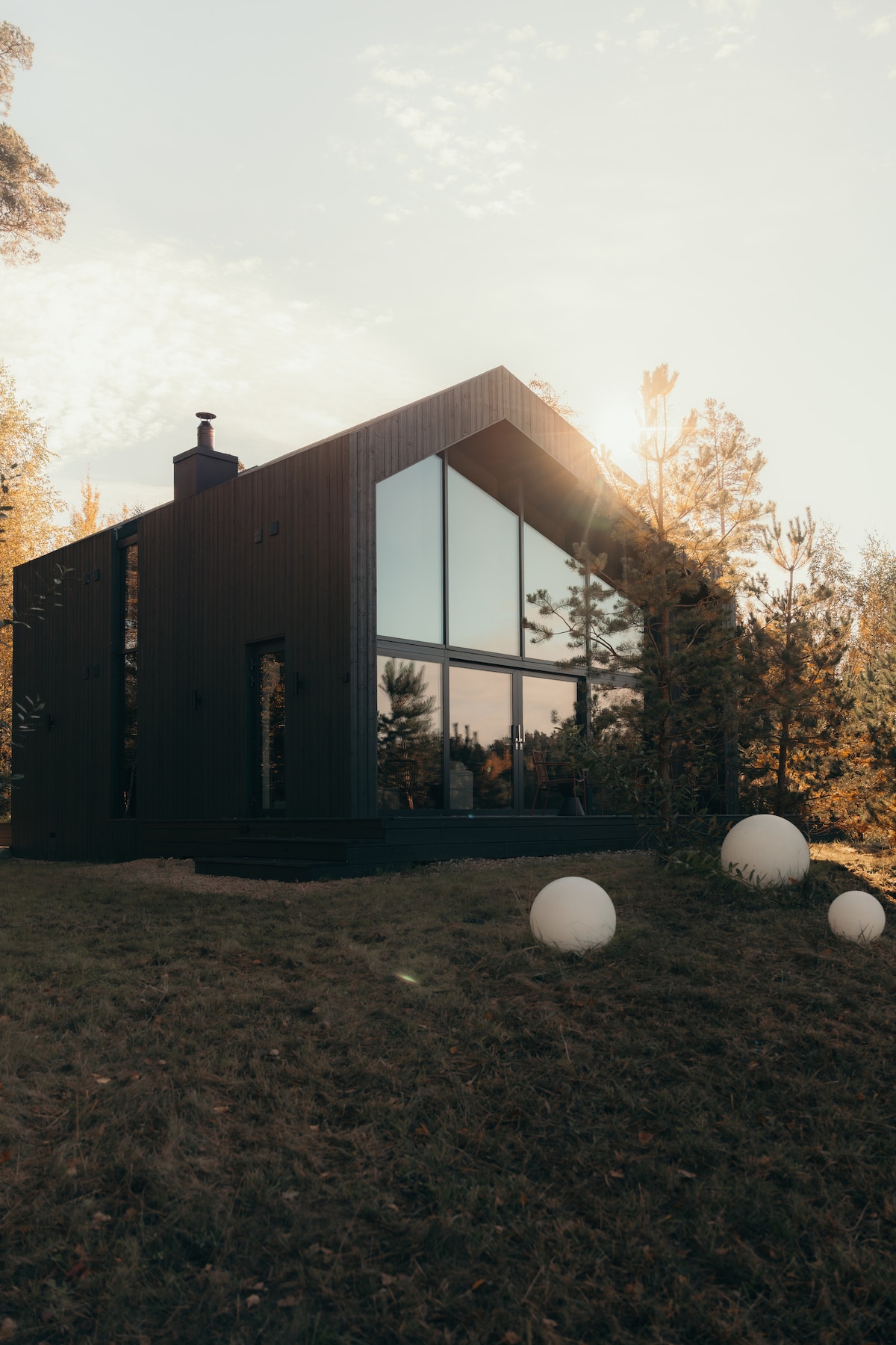 Micro-maison au sommet d'une colline à Amatciems avec vue du sol au plafond sur la forêt et le lac. Séjour ouvert avec cheminée, cuisine entièrement équipée et terrasse pour votre café au lever du soleil. Accès au lac et heures calmes du village pour un repos profond. Parfait pour les couples, les amis ou les familles à la recherche d'une escapade calme et design.