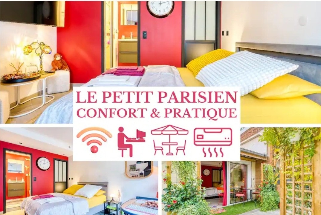 This unique, modern, and fully equipped house boasts its own distinct style. Located just a ten-minute walk from the metro, offering easy access to Paris (15 mins), Orly airport (20 mins), and Disneyland (30 mins). With 2 bedrooms, kitchen, living room, dining area, and 2 bathrooms, it's perfect for a comfortable stay. Additional amenities include AC, Wifi/Netflix, Coffee/Tea. For unforgettable moments, enjoy the outdoor jacuzzi spa, BBQ, and a beautiful terrace surrounded by greenery.