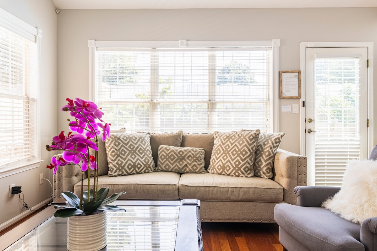 Nous sommes nichés dans l'un des meilleurs quartiers d'Atlanta. Notre espace est conçu avec l'hospitalité de luxe à l'esprit : une connexion Wi-Fi haut de gamme, une cuisine complète approvisionnée en café local de Portrait, un lit King Saatva avec des draps de haute qualité et une piscine. Au bout de notre rue tranquille se trouve la Beltline, une piste pédestre et cyclable de 8 miles reliant un certain nombre de points chauds d'ATL. Vous pouvez rejoindre les attractions du centre-ville en moins de 15 minutes et l'aéroport se trouve à seulement 15-20 minutes au sud de chez nous. Vous n'êtes jamais loin du plaisir ici !
