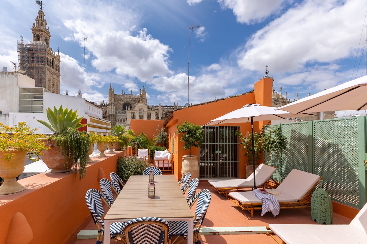 Penthouse duplex de luxe exclusif avec vue sur la cathédrale et la Giralda. Profitez d'un penthouse en duplex entièrement rénové, élégamment conçu et décoré par le célèbre @Amarosanchezdemoya, situé au cœur du centre historique de Séville et offrant une vue spectaculaire sur la cathédrale et la Giralda. Ce logement unique allie design moderne, confort et luxe, créant un espace avec son propre caractère distinctif.