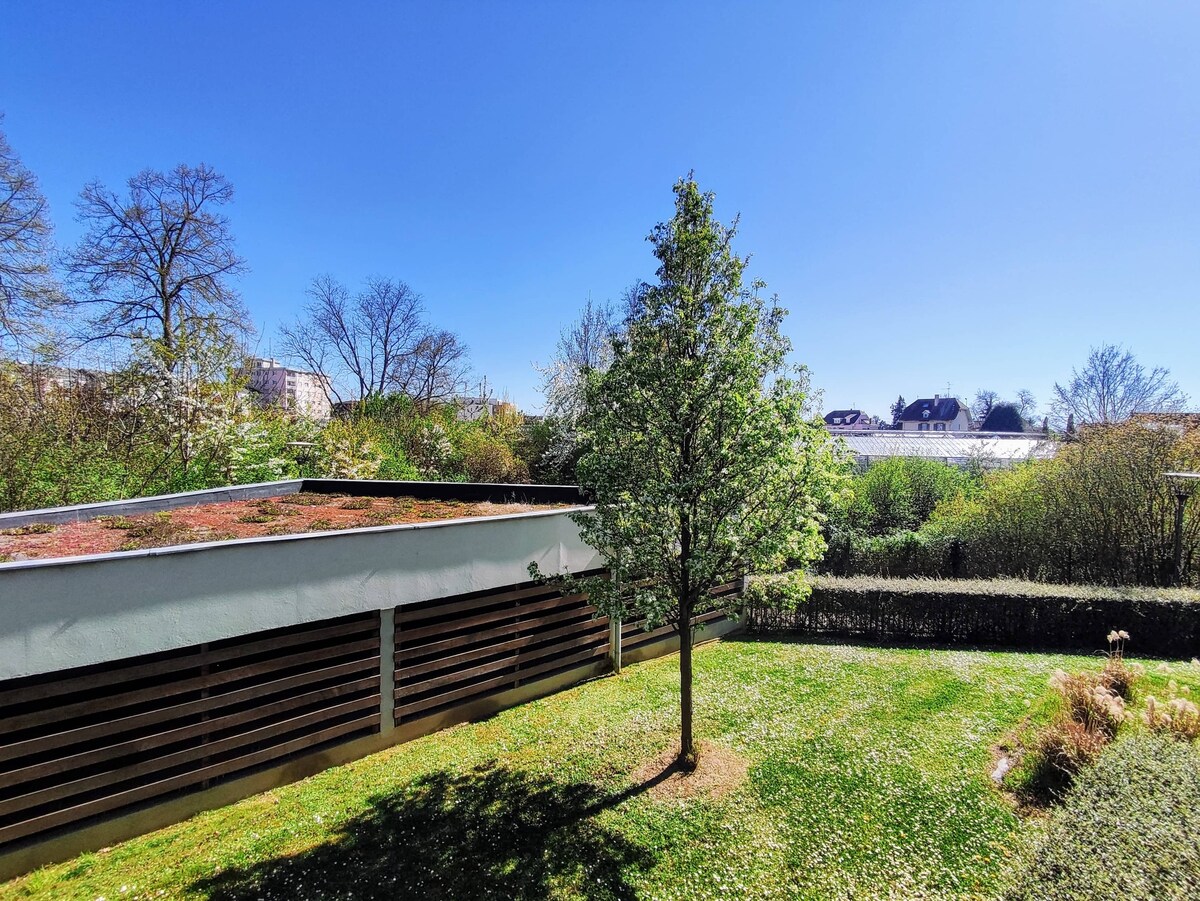 🚋 À 10 min du centre en tram, ce studio cosy refait à neuf combines charme et finitions haut de gamme, avec de belles moulures et une terrasse offrant une vue sur la cathédrale. Idéal pour profiter du marché de Noël de Strasbourg. Le tramway 🚉 au pied de l’immeuble vous amène au centre-ville en 6 arrêts. 📍 À proximité: Le Zénith, restaurants, commerces, salle de sport, hôpitaux. 📶 Wi-Fi gratuit et parking sur place. 🎢 Europapark le plus grand parc d'attractions d'Europe est à 40 min.