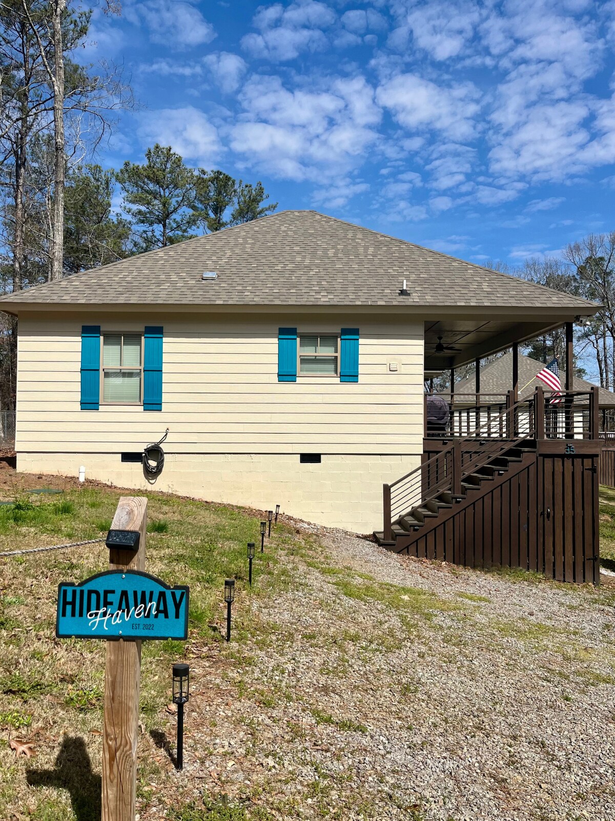 Évadez-vous à Hideaway Haven, une retraite sereine en bord de mer sur le lac Martin pouvant accueillir jusqu'à 6 personnes. Cette maison lumineuse dispose d'un porche couvert privé avec vue imprenable sur le lac, d'un accès direct au lac avec kayaks gratuits et d'un intérieur confortable avec cheminée électrique. Profitez d'un espace de travail dédié, d'une connexion Wi-Fi haut débit et d'une cuisine entièrement équipée. Parfait pour une escapade relaxante ou une aventure familiale amusante sur l'eau.