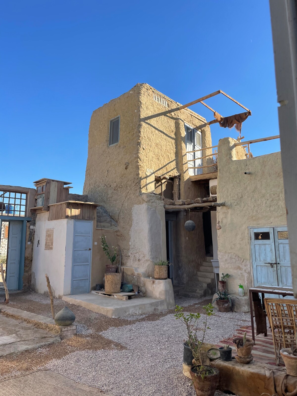 Le bâtiment est entièrement réalisé avec des matériaux locaux : avec du kershef – un mélange traditionnel de sel gemme séché au soleil, d'argile et de paille – pour les murs, avec du grès pour les salles de bains, des troncs de palmier et des feuilles de palmier pour les chaises et des tissus tissés à la main pour les revêtements. Tout est minimaliste et harmonieux. Ce logement élégant et unique promet un séjour inoubliable. Tous les meubles et objets artisanaux rendent hommage à la nature et aux talents des artisans locaux. Explorez et découvrez les lieux magiques à proximité de l'éco-lodge