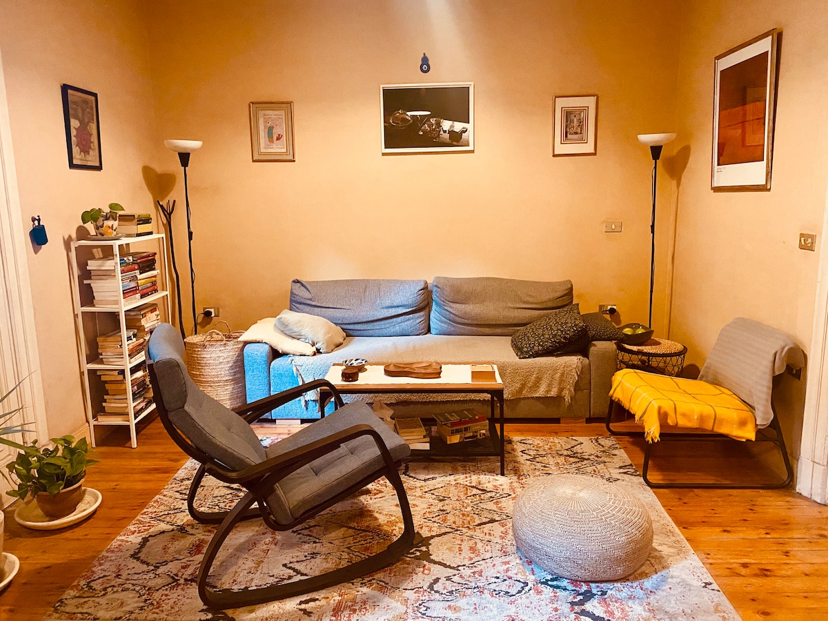 Dans un immeuble familial et dans l'un des quartiers les plus anciens du Caire; un appartement simple d'une chambre avec un beau jardin - la verdure n'est pas commune pour le centre-ville du Caire - l'endroit est entièrement meublé et a tout ce dont vous avez besoin pour vivre une expérience inoubliable. Le quartier est très central, très facile d'accès et très sûr nuit et jour. Vous serez accueilli par moi-même ou par un membre de ma famille qui sera là pour vous accueillir, un concierge est disponible pour les petits services.