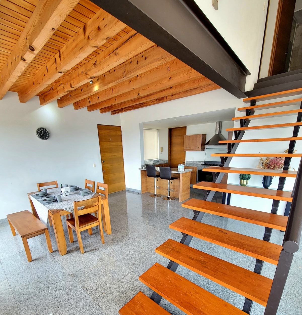 « Cet appartement spacieux à double hauteur offre une vue spectaculaire. De ses fenêtres, vous pourrez contempler l'emblématique Starbucks en face de vous, les magnifiques couchers de soleil sur la ville de Querétaro et les routes qui s'entrelacent. La nuit, profitez des lumières qui illuminent la ville, créant un décor magique. Une expérience unique pour ceux qui recherchent confort et vues inégalées. »