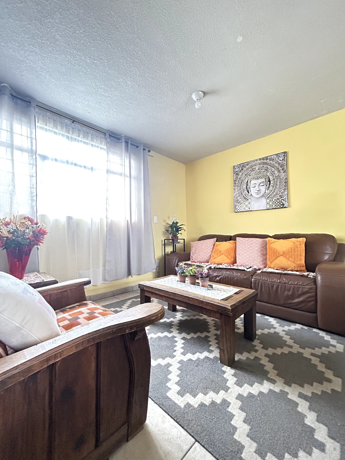 Bienvenue dans notre bel appartement à Tlalnepantla ! Avec une chambre complète et une chambre privée avec canapé-lit, ce logement dispose de la télévision dans les deux chambres, de deux salles de bains complètes, d'une cuisine entièrement équipée, d'un salon et d'une buanderie. Décoration élégante et soignée, conçue pour que vous vous sentiez comme chez vous dès le début. L'emplacement de l'appartement est idéal, dans un quartier central et bien desservi entouré de restaurants et de magasins. Proche de Mundo E