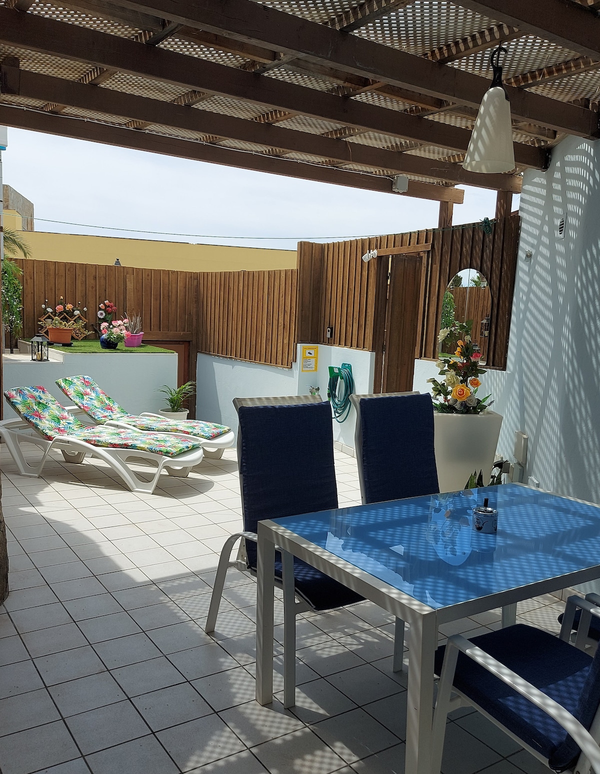 Spectaculaire villa mitoyenne de deux chambres à seulement 150 mètres de la plage de Meloneras, du terrain de golf et du centre commercial de loisirs. Avec entrée indépendante depuis la rue et parking facile à proximité immédiate. Elle dispose de la climatisation, du wifi, d'un jardin et d'un barbecue dans le logement. Située dans un complexe calme, avec une piscine spectaculaire et une aire de jeux pour enfants.