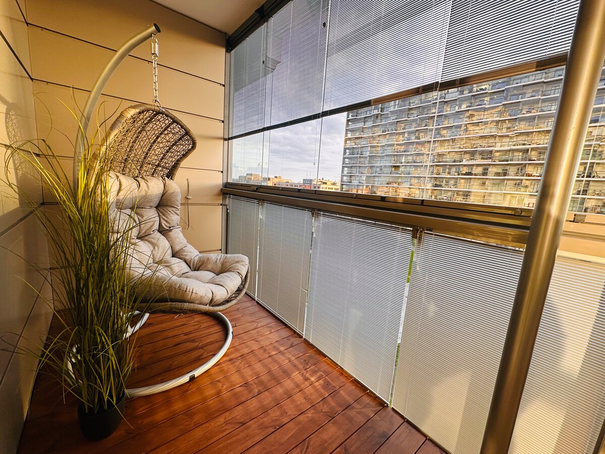 Appartement avec vue sur la mer, balcon et sauna (à côté du métro)
