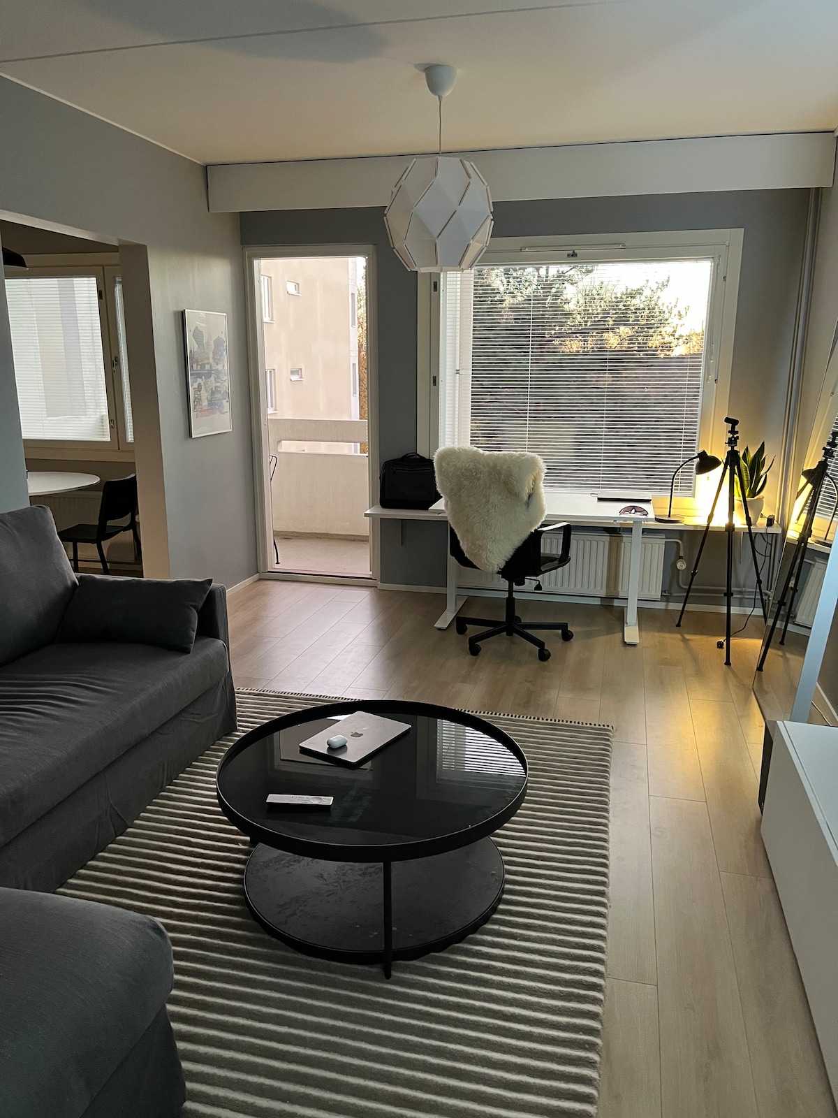 Équipé pour des séjours longs et courts. Sauna privé et parking gratuit. Chauffage au sol à circulation d'eau, balcon à la française avec porte coulissante en verre, lit de 160 cm, canapé-lit de 120 cm et lit d'appoint pour économiser de l'espace. Cuisine et salle de bains modernes avec tout ce dont vous avez besoin. Depuis la gare voisine, vous pouvez rejoindre l'aéroport en 7 minutes et Helsinki en 26 minutes en train. À côté de la réserve naturelle d'Isosuo, où vous pouvez accéder à des sentiers de randonnée. En hiver, les pistes de ski partent à proximité.