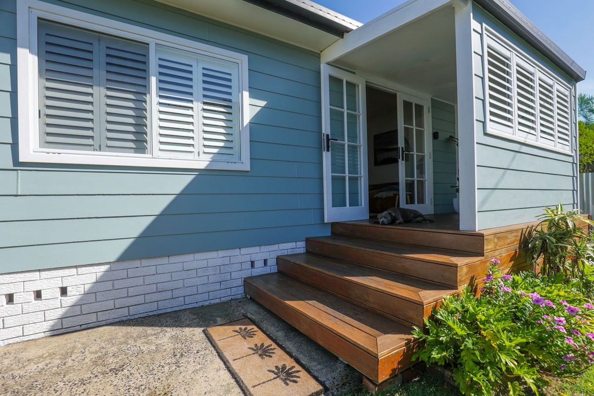 Détendez-vous dans l'une des cabanes de plage originales de Yamba, juste à côté de Pippi Beach. Récemment rénovée, la cabane des années 1960 a été restaurée pour ajouter une sensation de fraîcheur et de confort, tout en conservant le charme de l'ancienne école. Parfaitement située, la cabane bénéficie du son de l'océan et d'une promenade facile jusqu'à la ville. Le salon donne sur la terrasse et le patio couvert. L'endroit parfait pour profiter d'un repas ou d'une sieste. NOUVEAU : climatisation split dans le séjour et les chambres